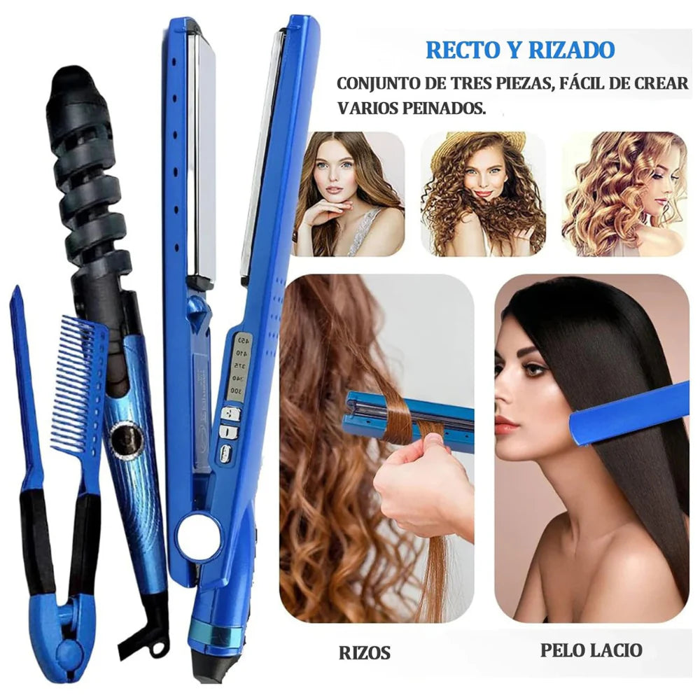 💙 Combo Nano Titanium (Plancha + Rizador + Peines)